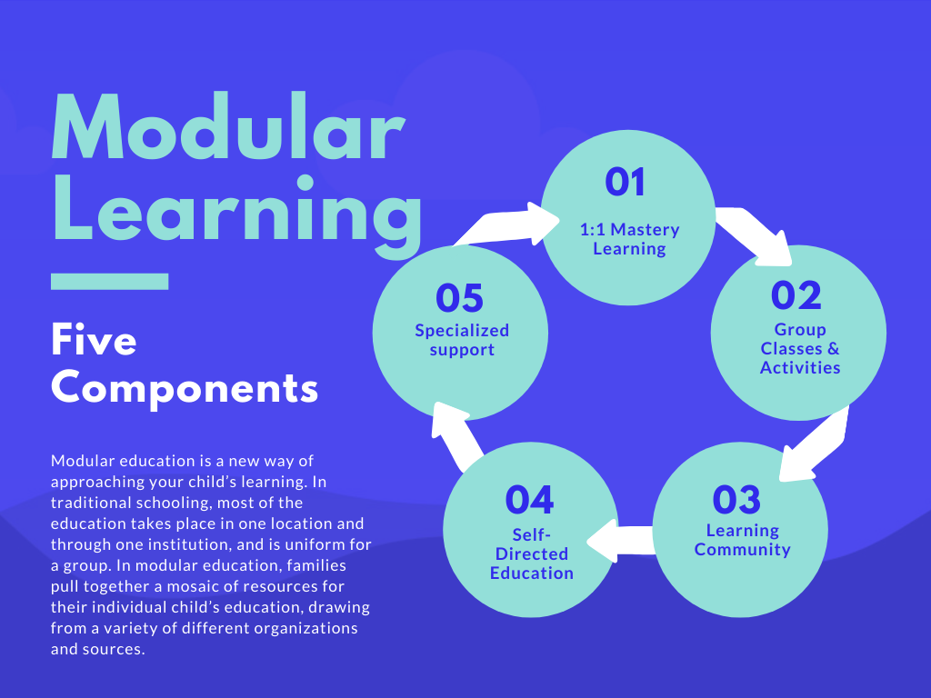 In modular learning, parents create a mosaic of activities and experiences for their child’s education, composed of five parts: